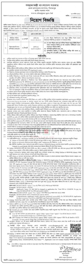 আবেদন করার সময়সীমা ।Dinajpur DC Office Job